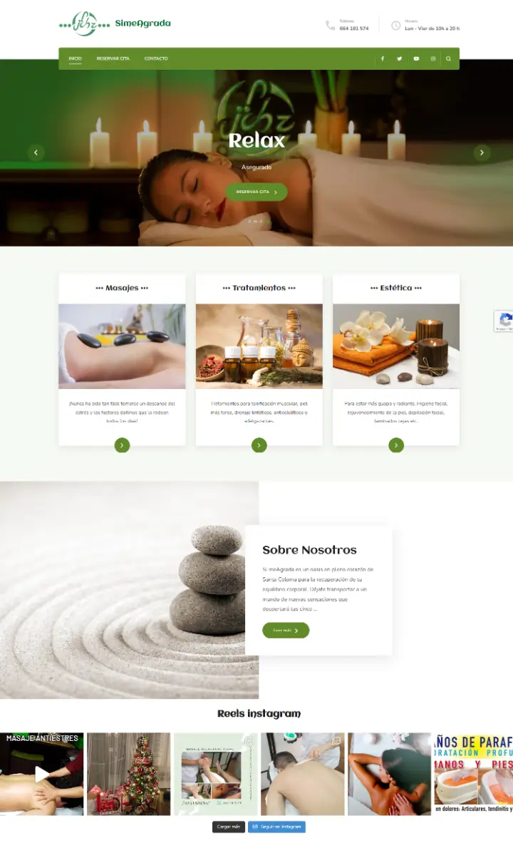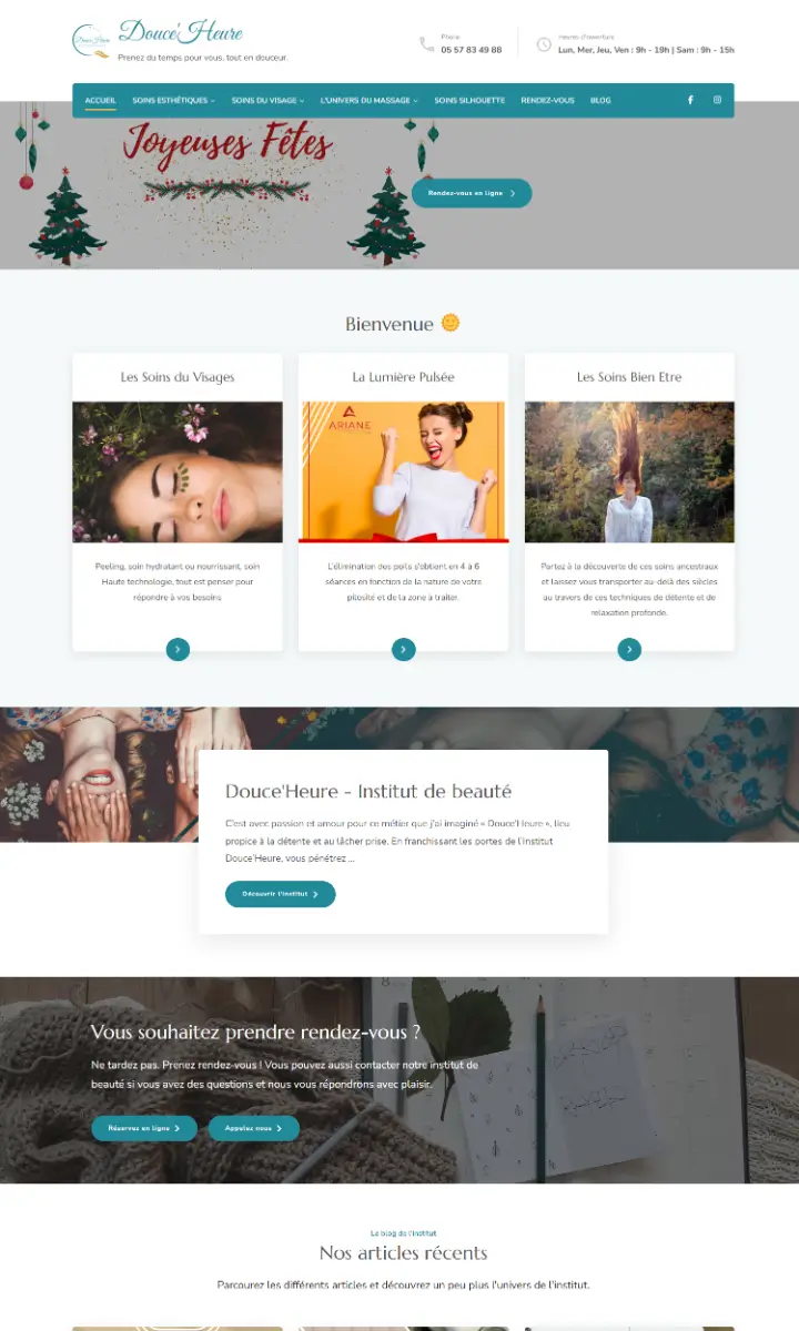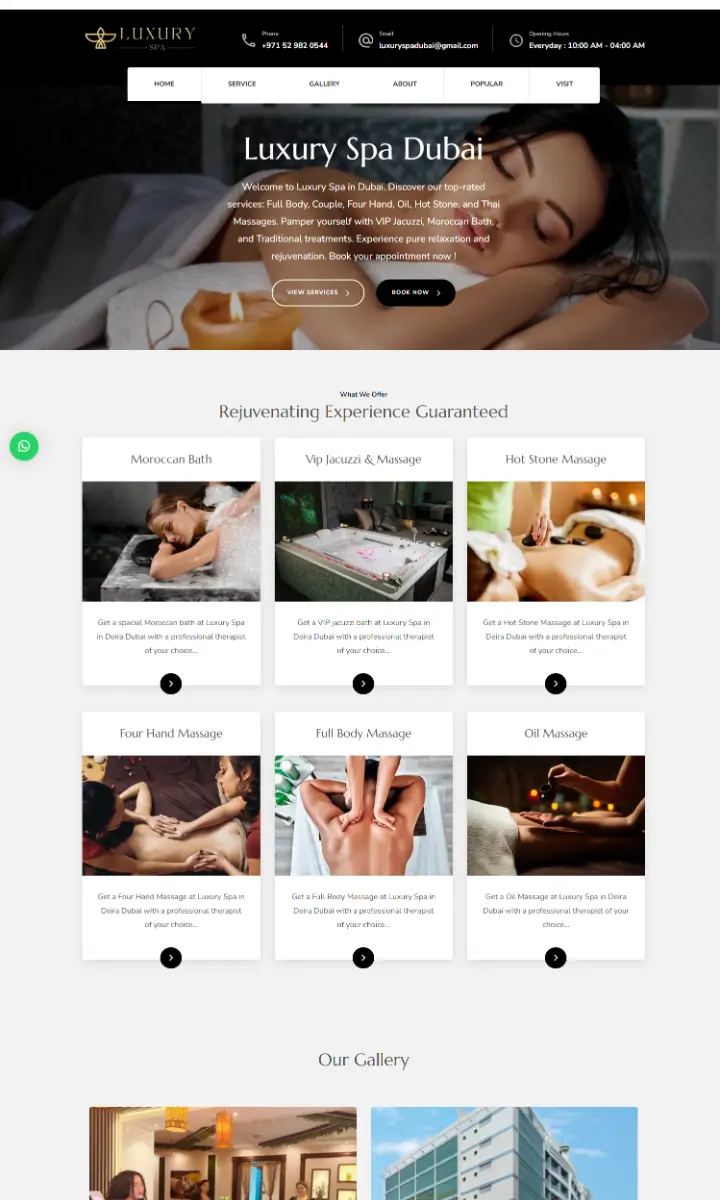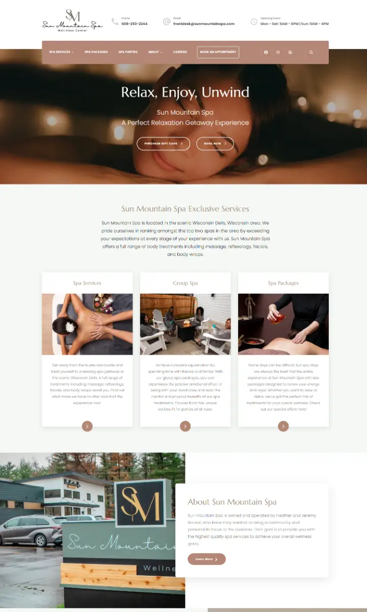 The Spa Center homepage includes several sections highlighting what you do and the different services you offer.